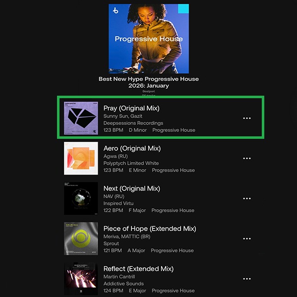 Gazit & Sunny Sun latest track #Pray entered on January Best New Progressive House #HypePicks Compilation #beatport ♥️
